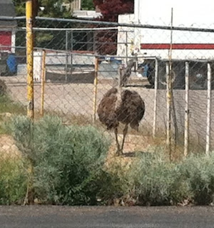 After Petroglyphs, we went to a very particular Twisters restaurant. That’s a burger/burrito chain around here. No big deal, except this specific location was featured prominently in a season of the TV series Breaking Bad, which Mindy is a fan of. We weren’t expecting more wildlife, but in the lot next door, we saw an emu.